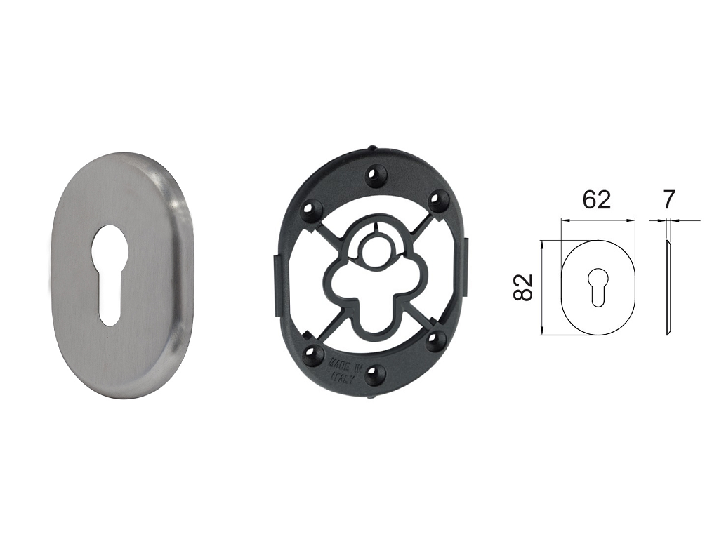 Bocchetta Ovale Foro Yale per Cilindro Europeo mm.60x85x8h AISI304 Inox Satinato  Fimet Maniglie