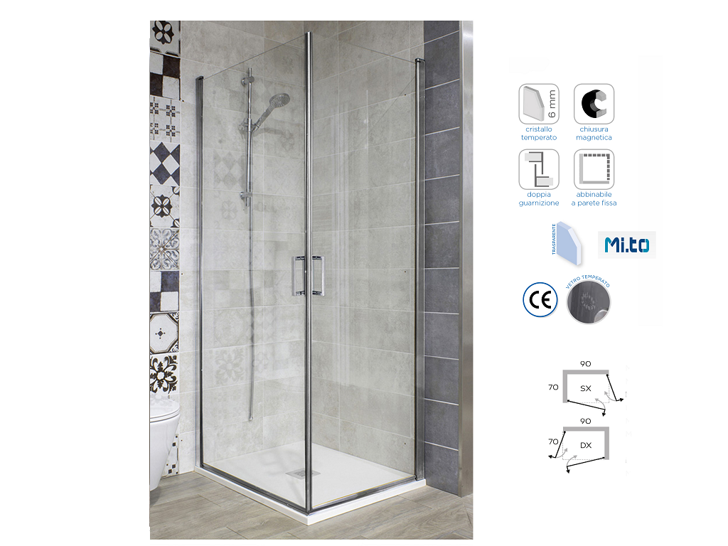 Home Soluzioni per la Casa Bagno e Arredo Bagno Box Doccia Angolare Box Doccia Rettangolare Mod.Carbon 2ante Cristallo 6mm H195 Trasparente-Cromato cm.70×90 Dx Mixtech