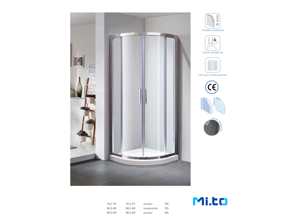Box Doccia Semicircolare Square 6mm H195 Scorrevole cm.80x80 Cromato-Trasparente   Mixtech