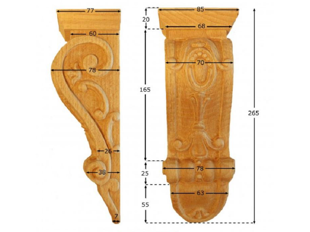 Home Ferramenta Fregi , Cornici e Profili di Rifiniture Legno e Muri Capitelli in Legno CAPITELLO LEGNO FAGGIO W85xH265xD82- W98xH320xD100- W65xH180xD58 prodotto da PRU