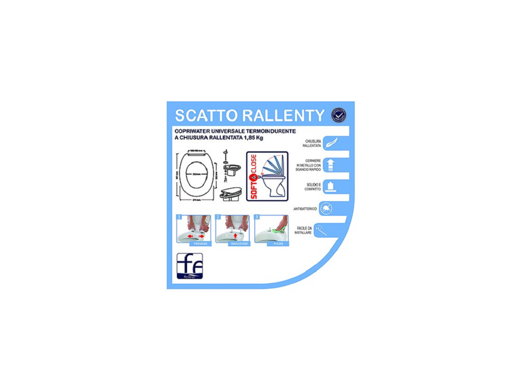 Home Soluzioni per la Casa Bagno e Arredo Bagno Copriwater e Ricambi Copriwater Universale18 Termoindurente Scatto Rallenty Cerniere Inox Sganciabili mm.461×374 | Feridras