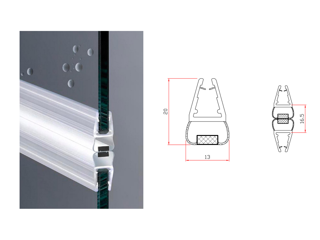 Guarnizione Box Doccia per Vetro Spessore mm.6-8 cm.200h con Magnete mm.20 X 13  | Trfo