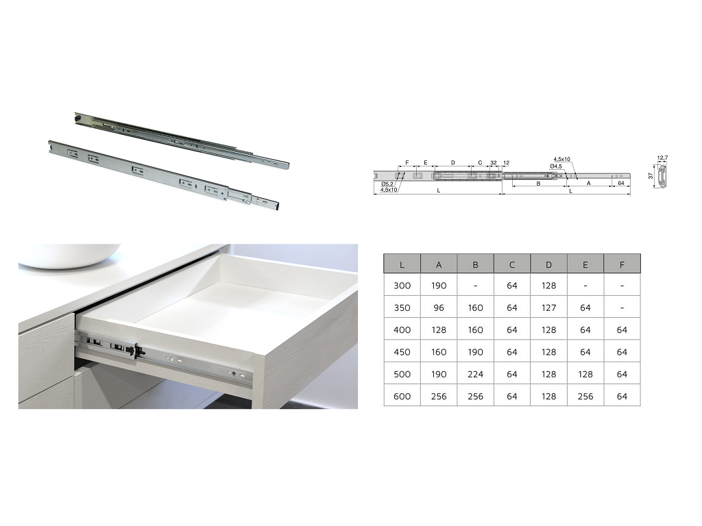 Home Ferramenta Funzionalità del Mobile Guide per Cassetto Guide per Cassetto con Cuscinetti a Sfere GUIDE CON SFERE PER CASSETTO ESTRAZIONE TOTALE 37×12,7h PORTATA kg.25 ZINCATO VARIE LUNGHEZZE | EMUCA