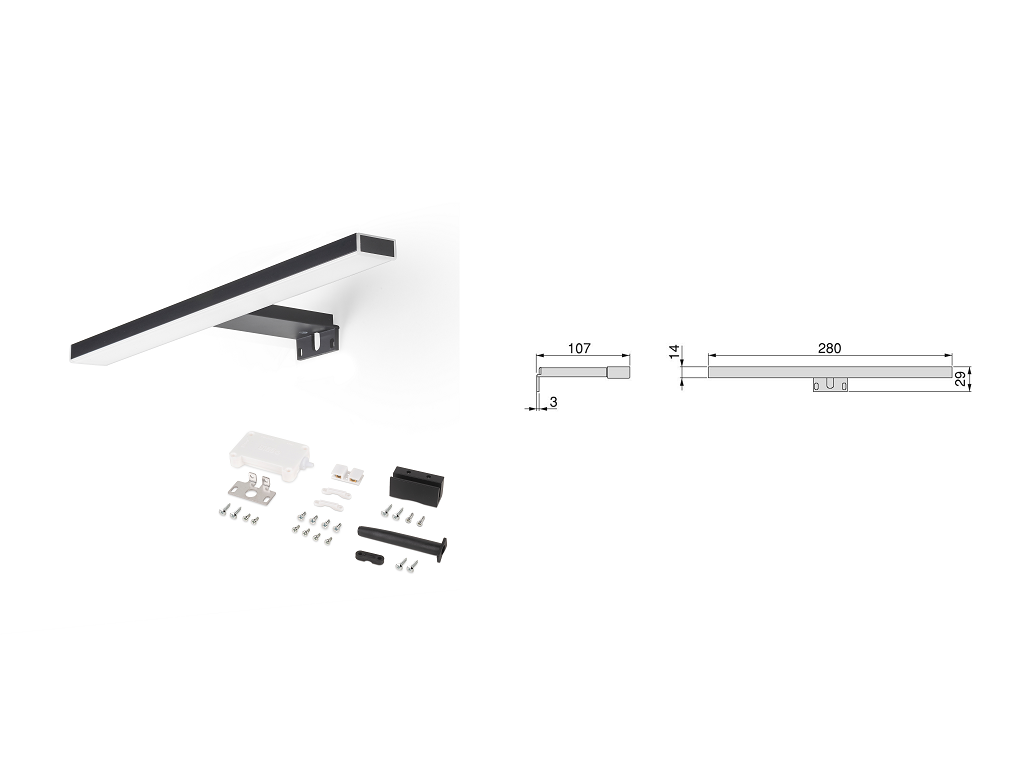 Lampada Led Leo Ip44 W6 Lm457 mm.280x29x107h K5700 Attacco Multigancio Nero  Emuca
