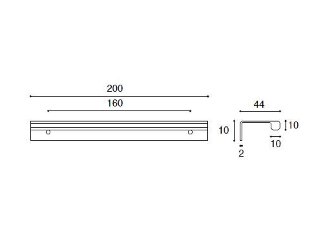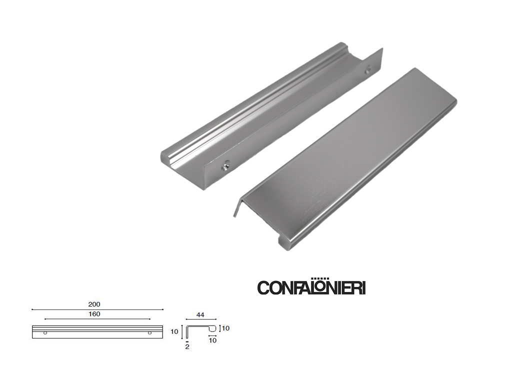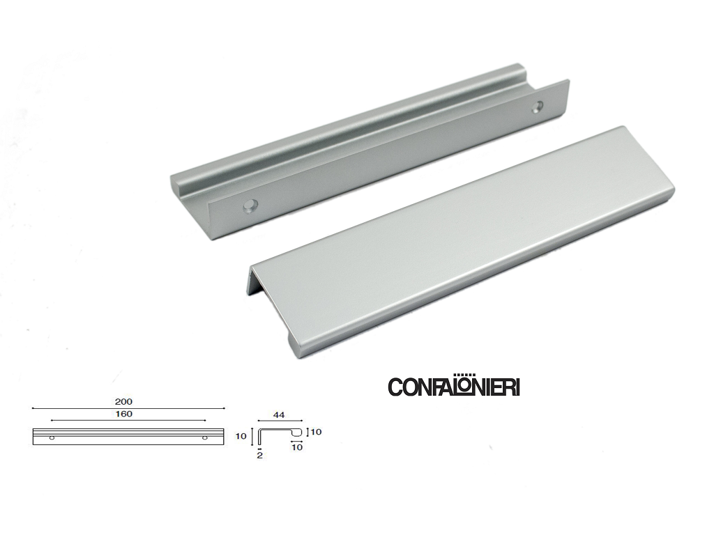 Maniglietta Mobile per Bordo Anta Interasse 160 mm.200x45x20h  Alluminio varie finiture   Confalonieri