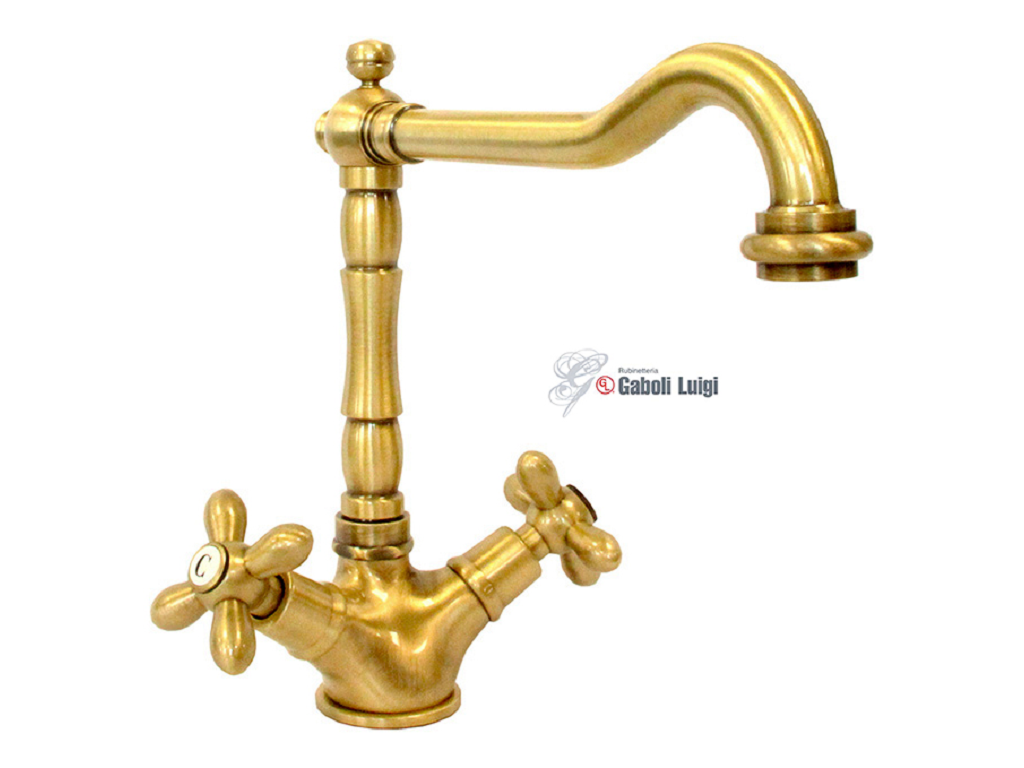 Miscelatore Lavello Monoforo Modello Duetto Canna Alta a Croce Bronzo  Gaboli Luigi