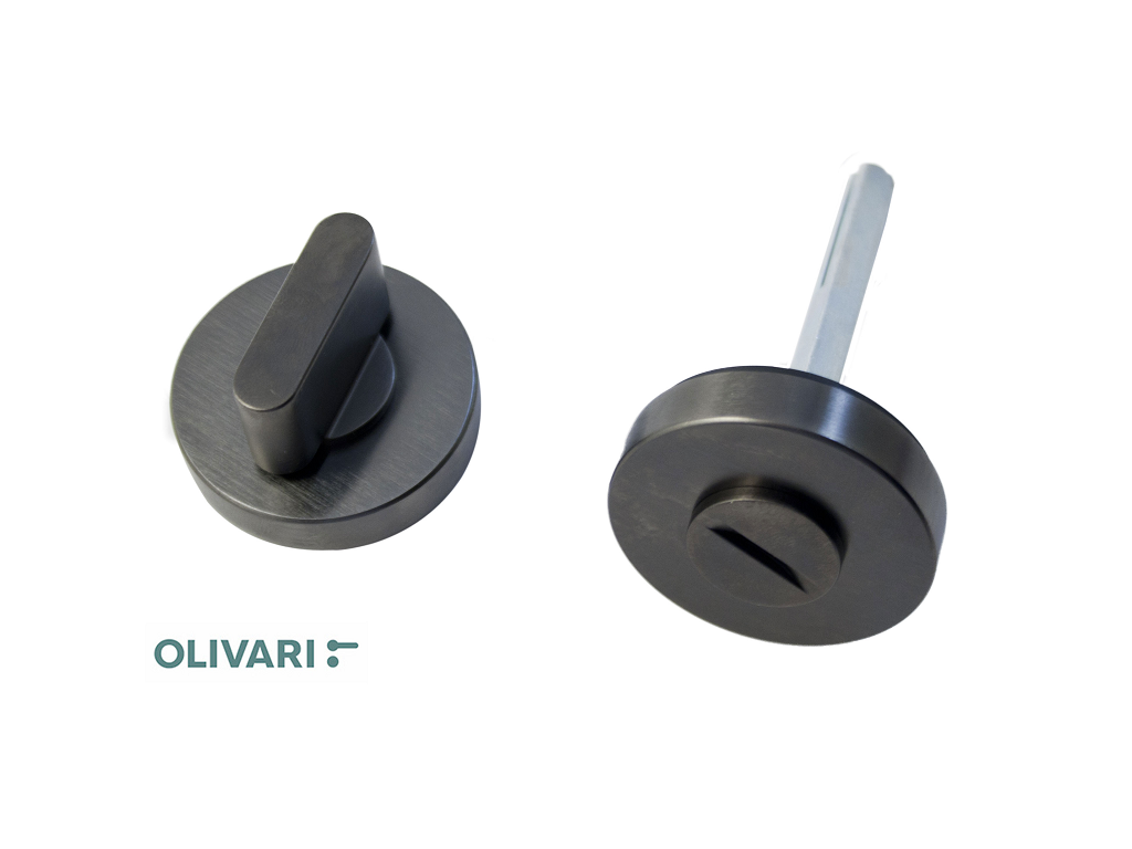 Home Maniglieria per Porte e Mobili Maniglie per Porte Nottolini WC per Serrature Porte Nottolino WC per Serratura Stile Moderno Nottolino Chiavistello WC Q6 modello Link Rosetta tonda d.47x10h US-Satinato Antracite | Olivari