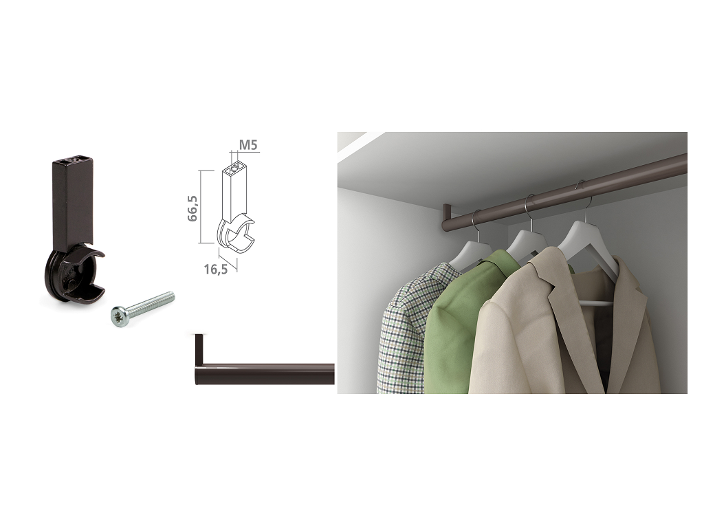 Home Soluzioni per la Casa Ordine Sistemazione Spazi e Mobili Tubi Appenderia e Reggitubo Reggitubo Laterale Zama per Tubo Tondo mm.66,5×16,5 Passante Moka Ral8019 Emuca