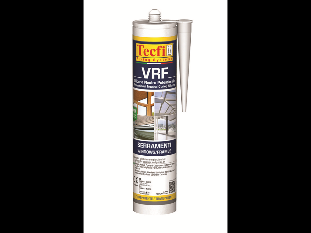 Home Edilizia, Vernici e Accessori Pitturazione ,Fondi , Smalti ,Lubrificanti e Attrezzi Colle,Sigillanti ,Siliconi, Pistole e Schiuma Silicone Neutro, Acetico ,Polimero Silicone Neutro per Serramenti Vrf-con Beccuccio Certificato Ce ml.300 Bianco Ral 9010 | Tecfi