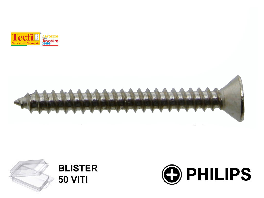 VITE AUTOFILETTANTE TSP PH2 INOX A2 IN BLISTER DA PEZZI 50 mm.3,9 VARIE LUNGHEZZE  TECFI